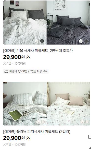 할인 품목 : 이불, 패드, 수건 등