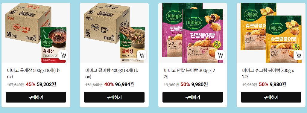 할인 품목 : 만두, 함박스테이크, 피자, 갈비탕 등