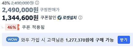 쿠팡 와우 회원 가입시 할인가 1277370원