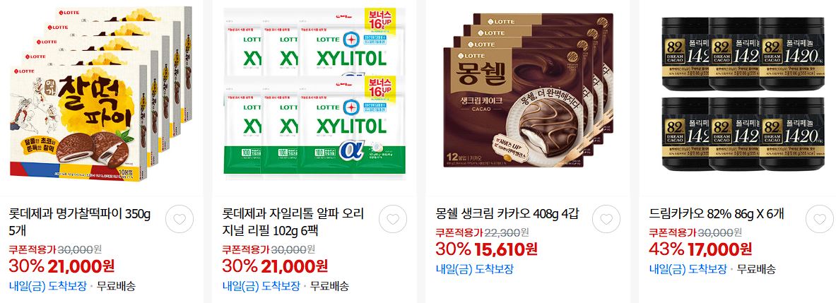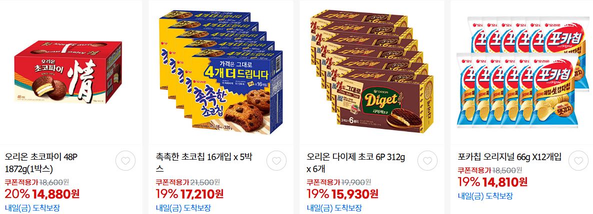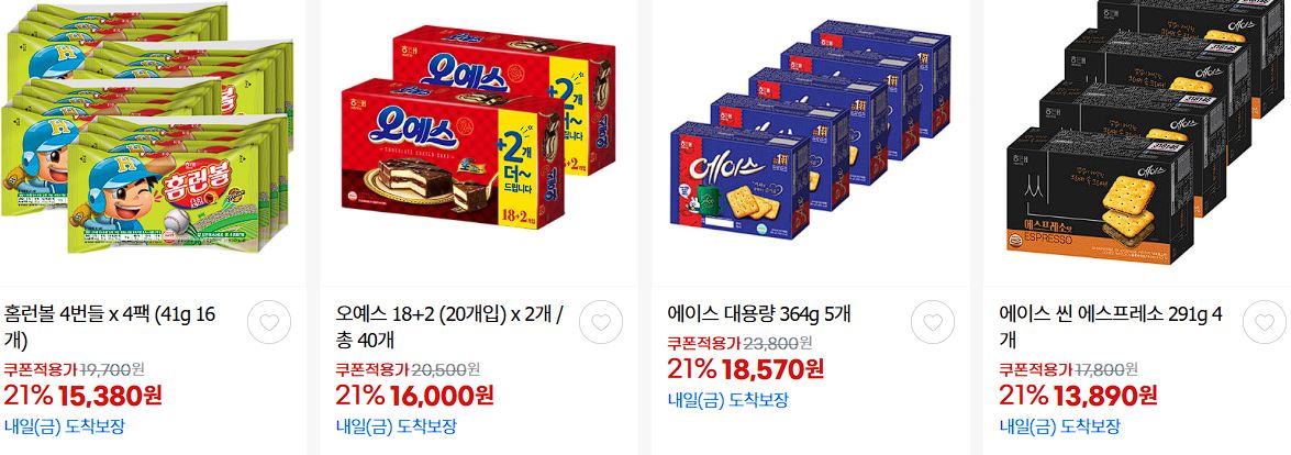 할인 품목 : 몽쉘, 오예스, 홈런볼 등