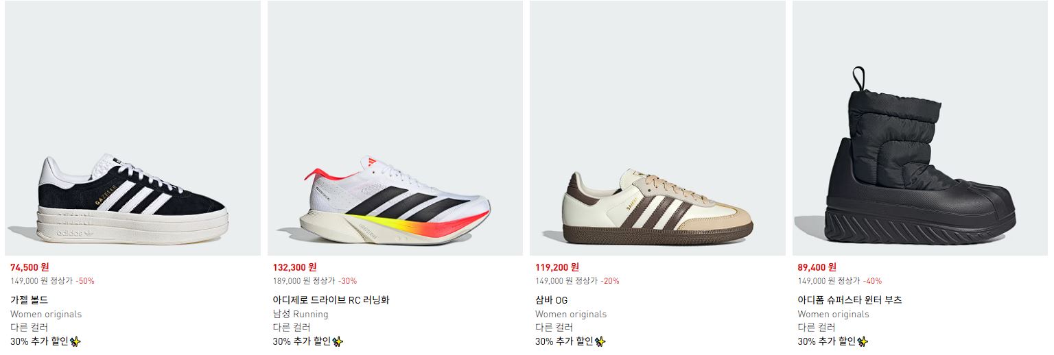 아디다스 홀리데이 기프트 30% 추가 할인 정보 [링크]