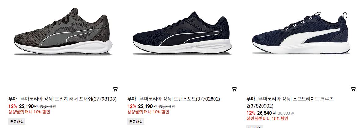 푸마 런닝화 다양한 제품을 할인 판매하네요.