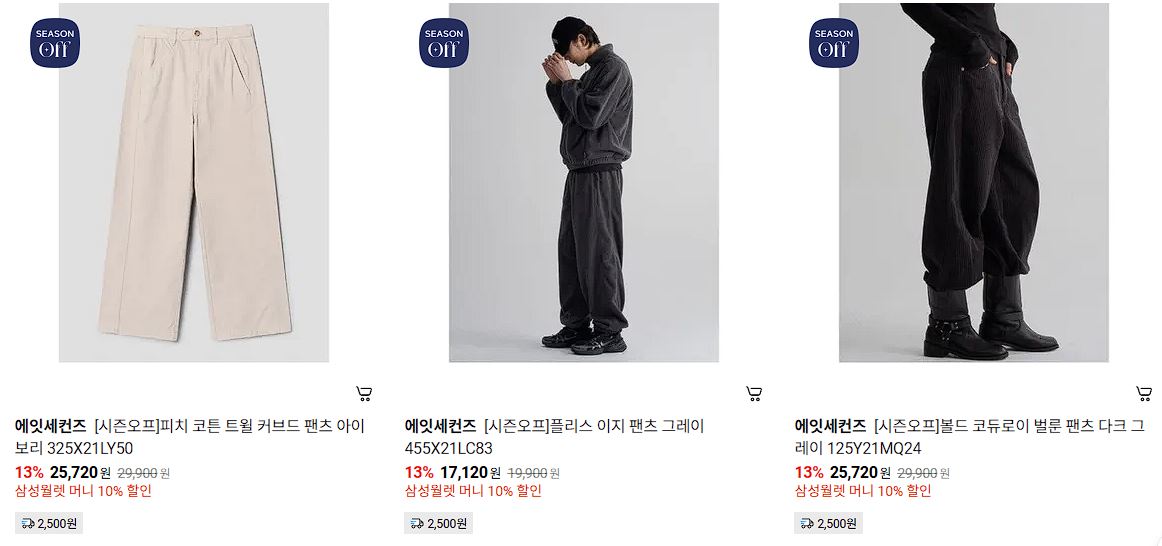 에잇세컨즈 다양한 제품을 할인 판매하네요.