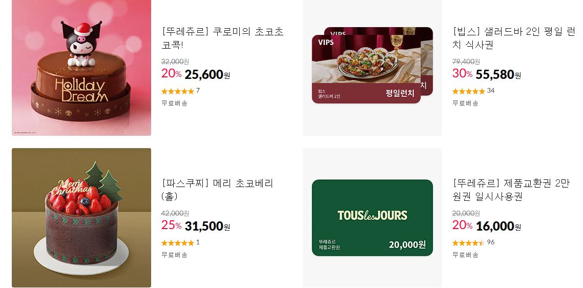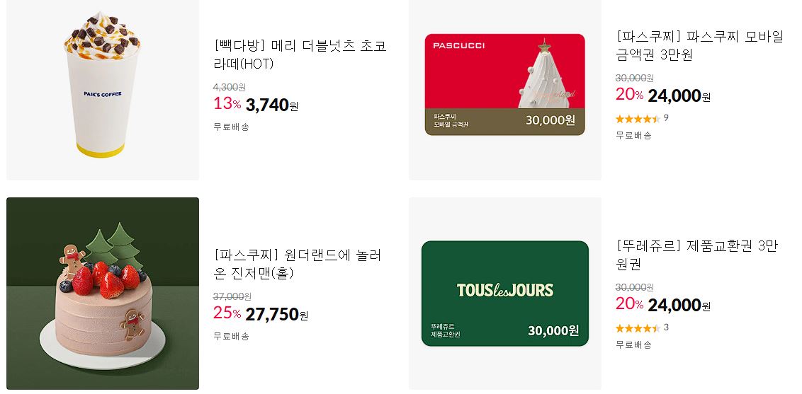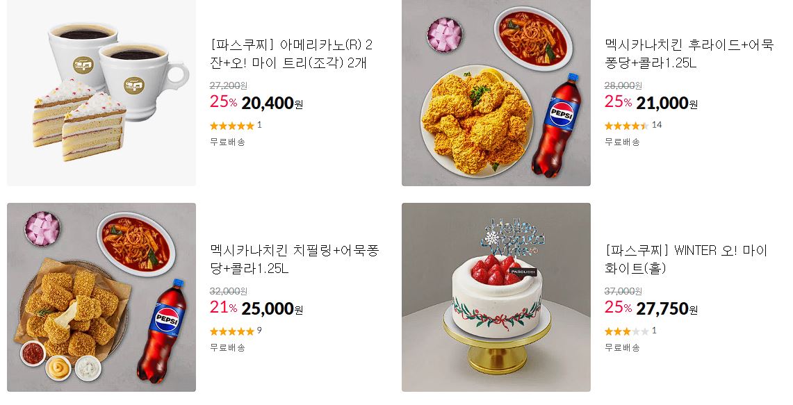 할인 브랜드 : 뚜레쥬르, 파스쿠찌, 피자헛 등