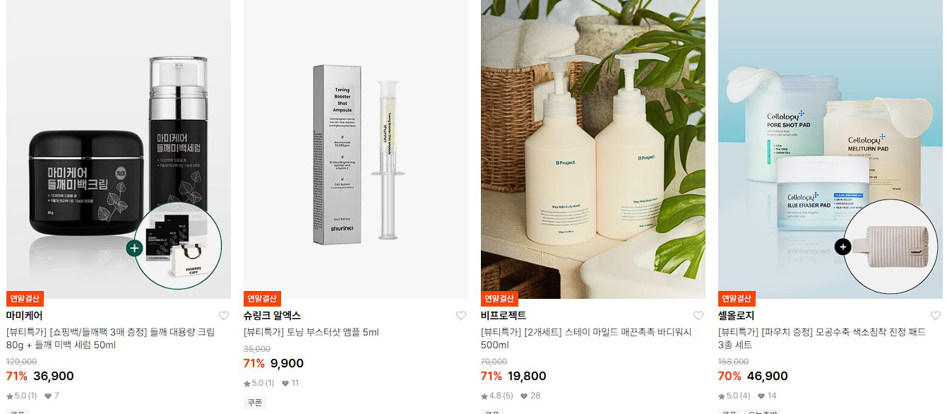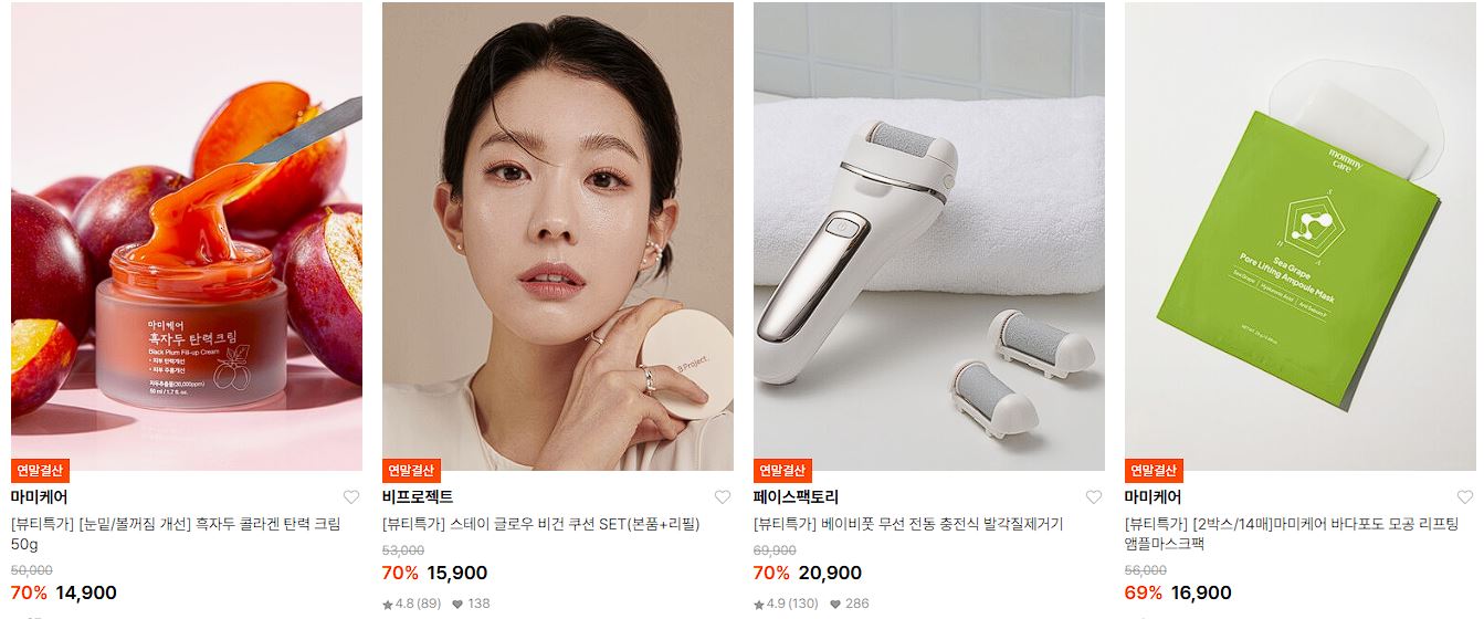 할인 품목 : 마스크팩, 뷰티 디바이스, 크림 등
