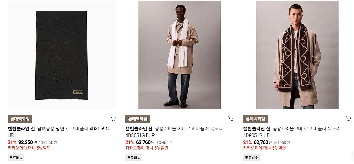 할인 품목 : 점퍼, 자켓, 티셔츠, 머플러 등