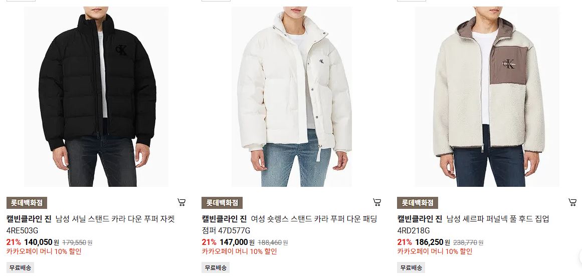 캘빈클라인진 다양한 제품을 할인 판매하네요.