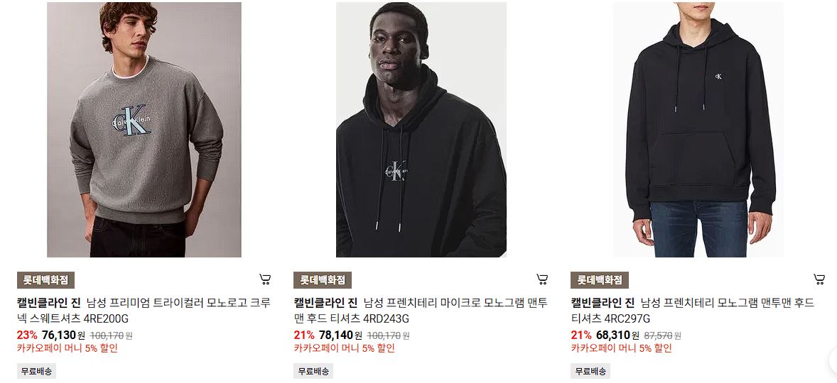 캘빈클라인진 다양한 제품을 할인 판매하네요.