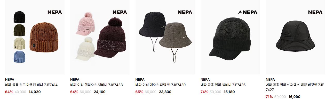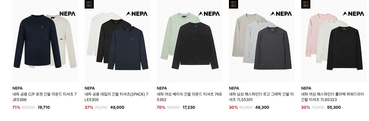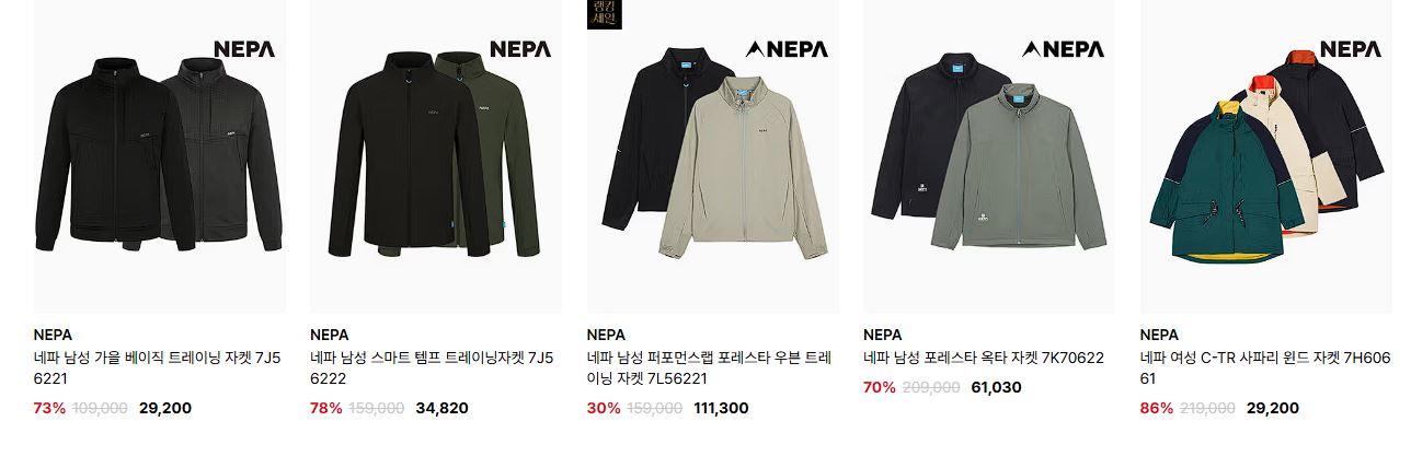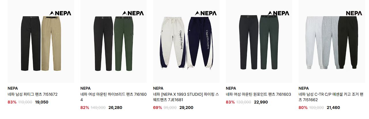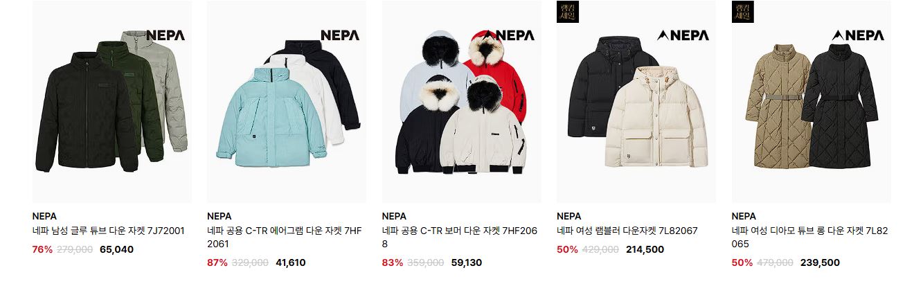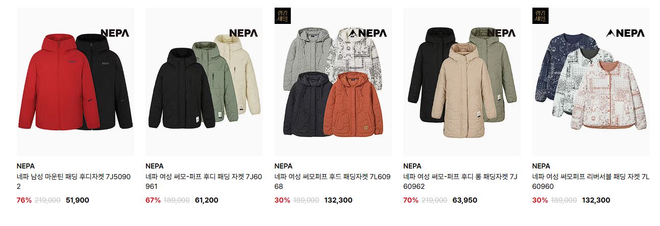 네파 다양한 제품을 할인 판매하네요.