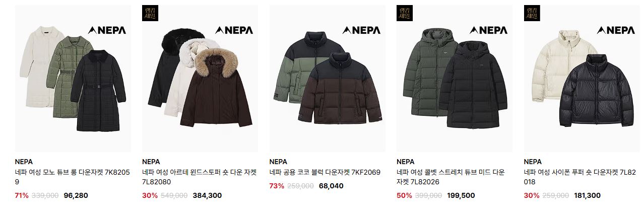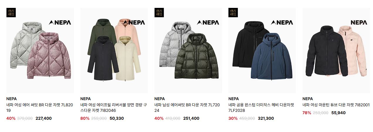 네파 다양한 제품을 할인 판매하네요.