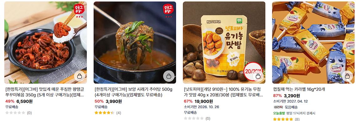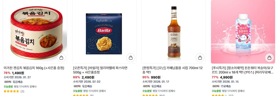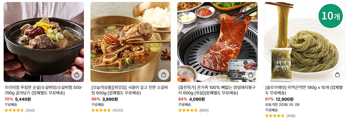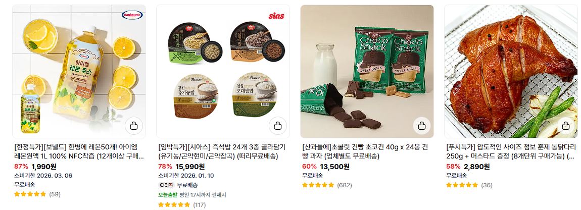 할인 품목 : 캡슐커피, 만두, 음료, 갈비탕 등