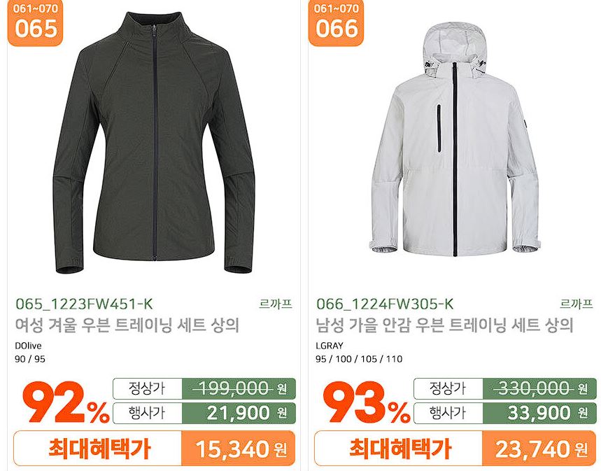 할인 품목 : 점퍼, 자켓, 티셔츠 등