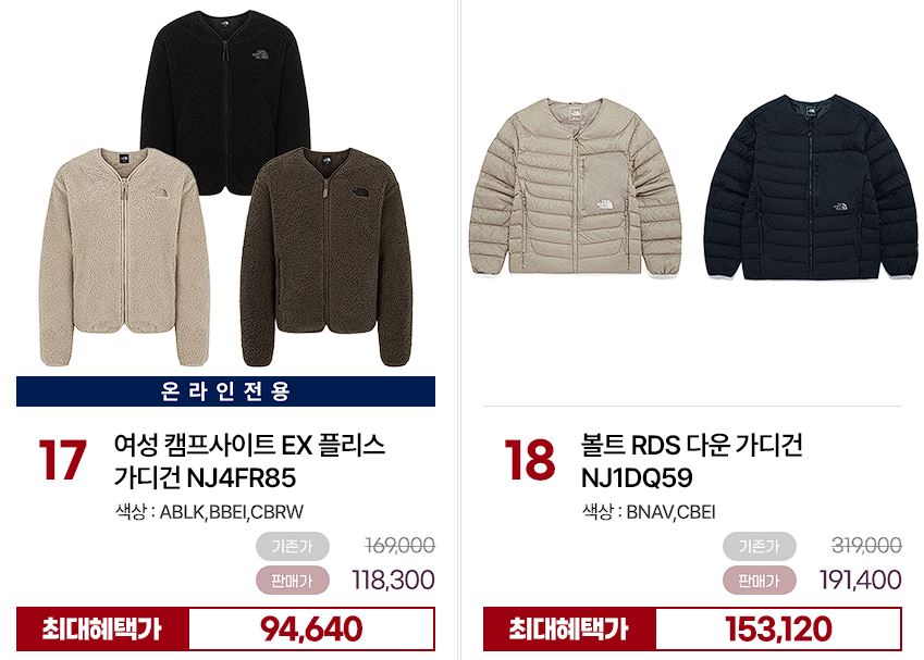 노스페이스 다양한 제품을 할인 판매하네요.