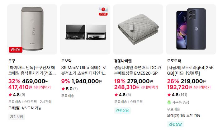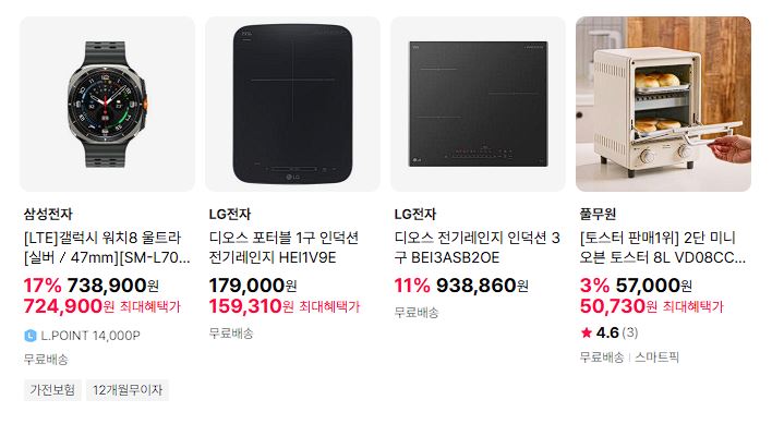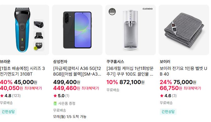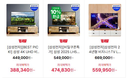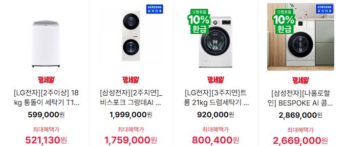 할인 품목 : 티비, 세탁기, 노트북, 휴대폰 등