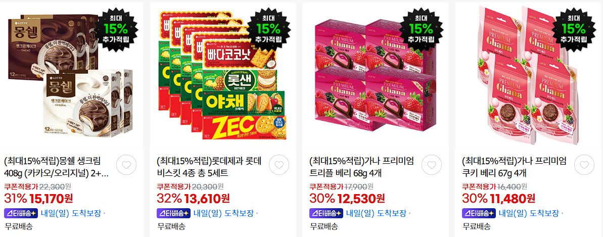 할인 품목 : 몽쉘, 찰떡파이, 말랑카우 등