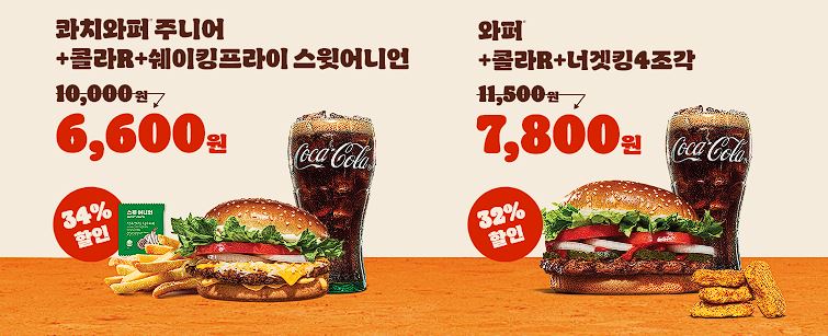 할인 메뉴 : 와퍼, 와퍼주니어, 갈릭불고기와퍼 등