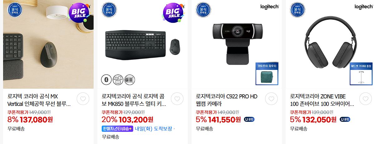 할인 품목 : 마우스, 키보드, 헤드셋 등