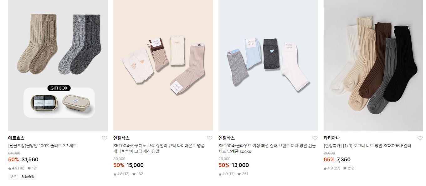 할인 품목 : 양말, 벨트 등