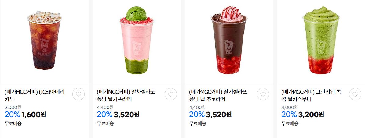 할인 브랜드 : 메가MGC커피, 올리브영, 배스킨라빈스 등