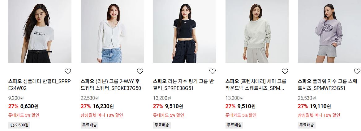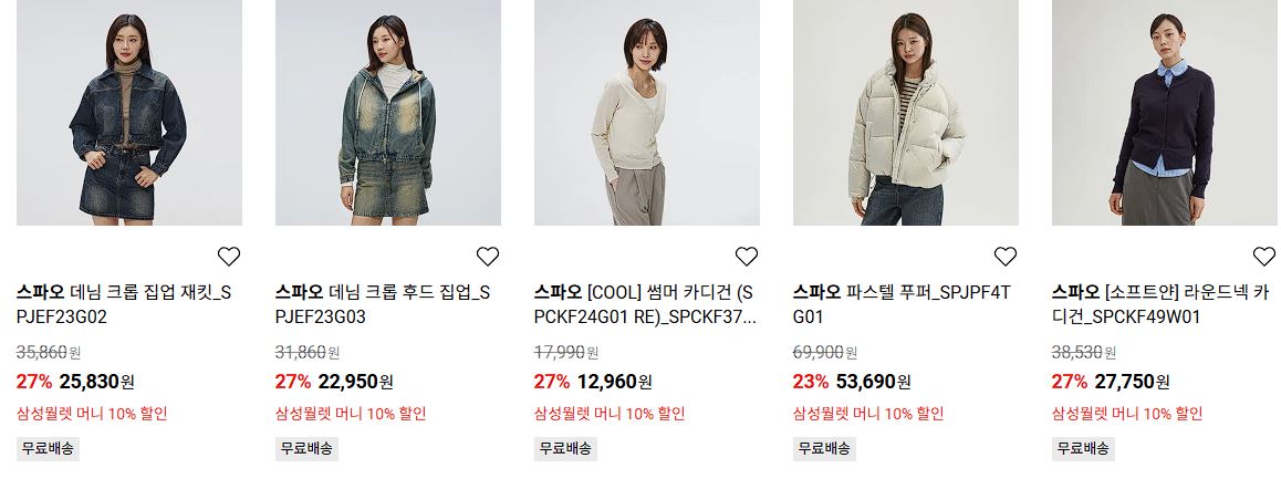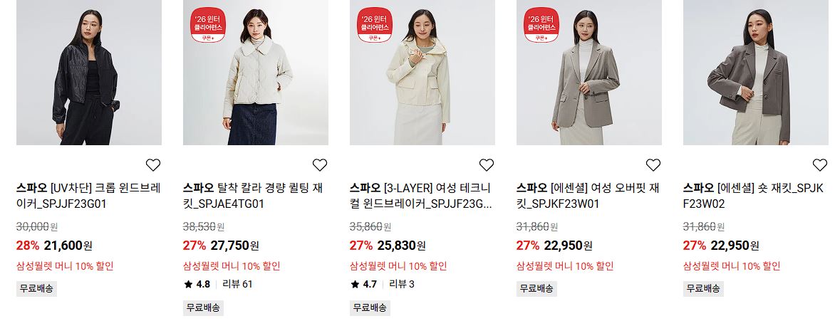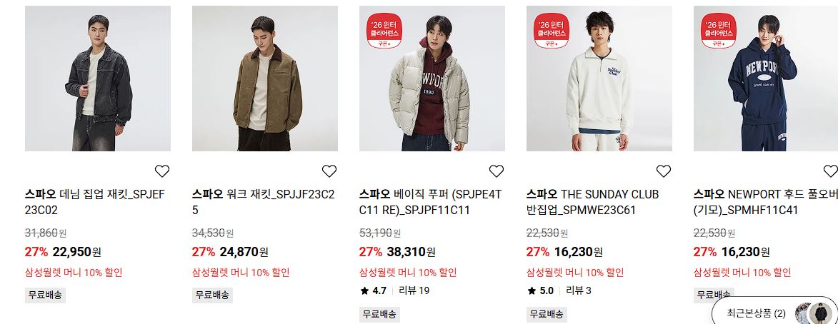 할인 품목 : 점퍼, 팬츠, 티셔츠 등