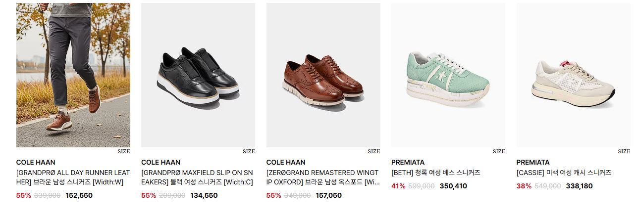 할인 품목 : 구두, 운동화 등