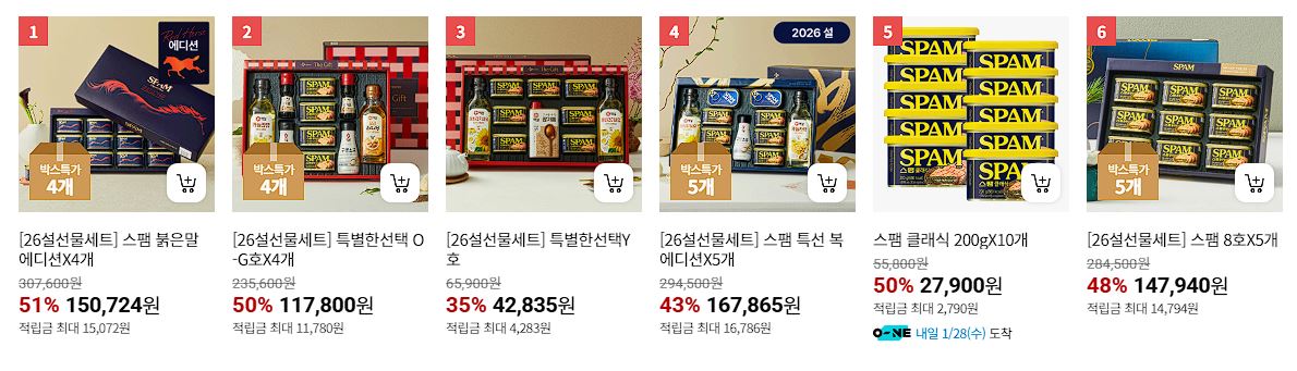할인 품목 : 만두, 선물세트, 부대찌개 등