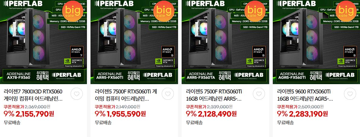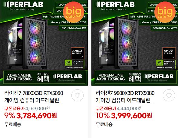 | AMD 7800X3D+RX9070XT 16G+32GB+1TB 조립PC 할인 (0) | 2026.01.28 |