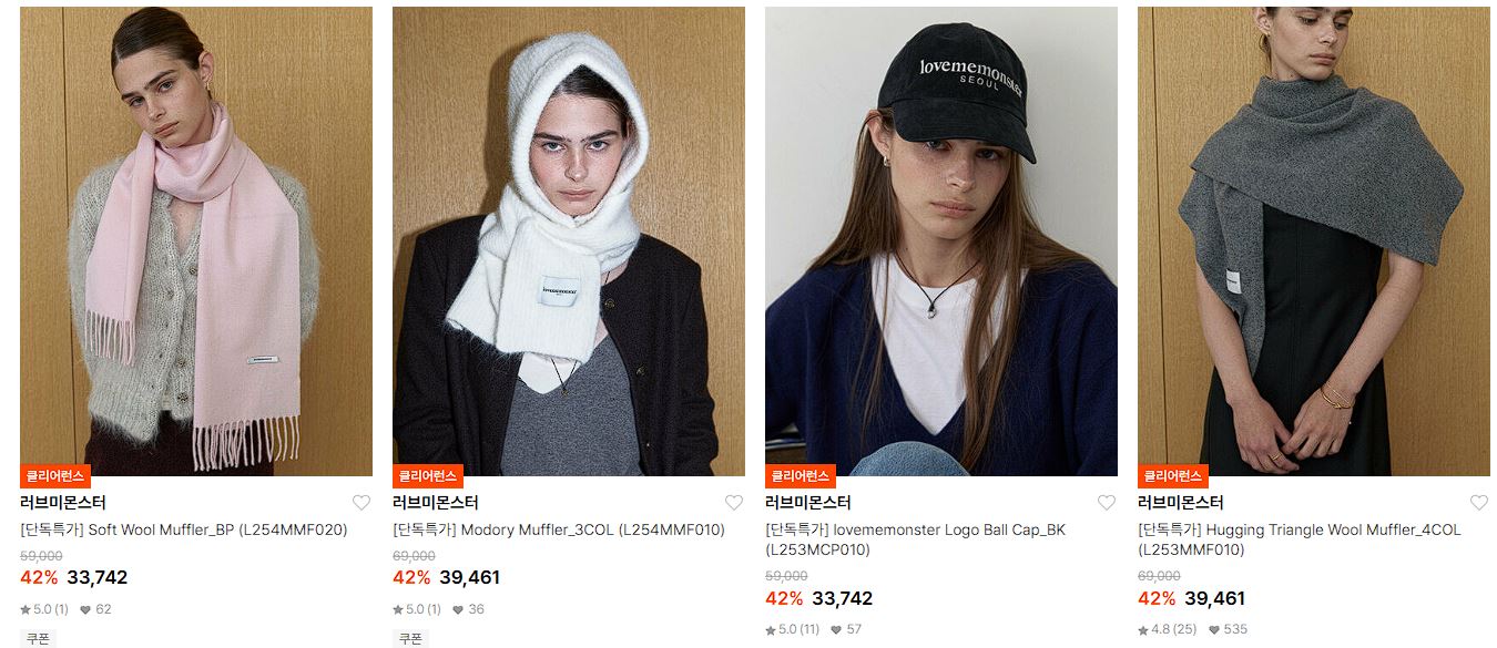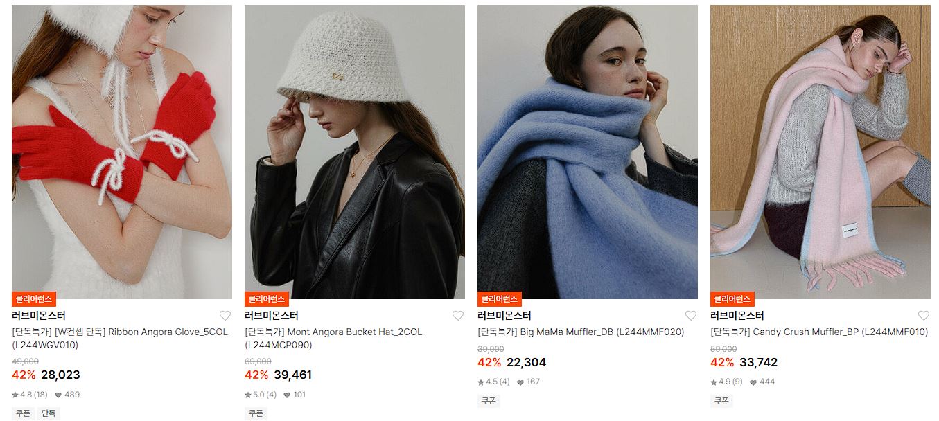 러브미몬스터 다양한 제품을 할인 판매하네요.
