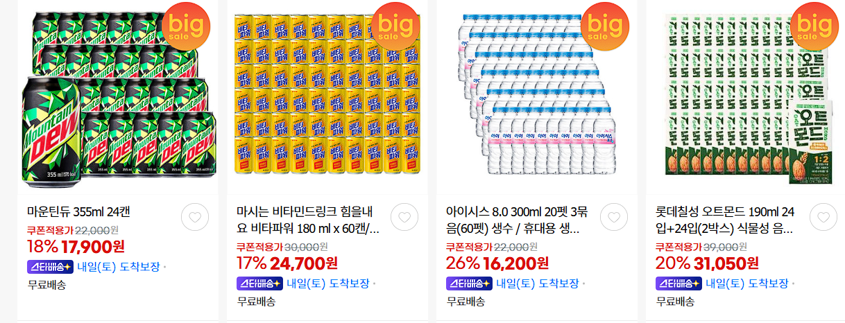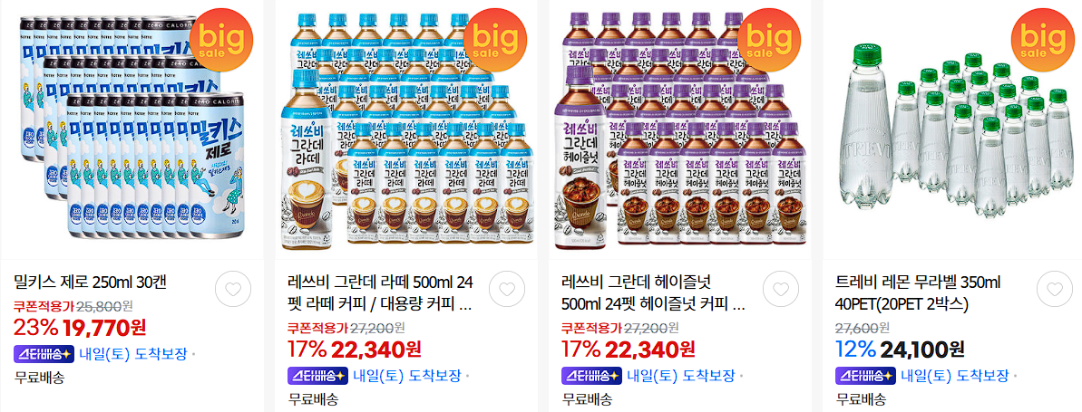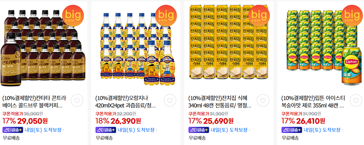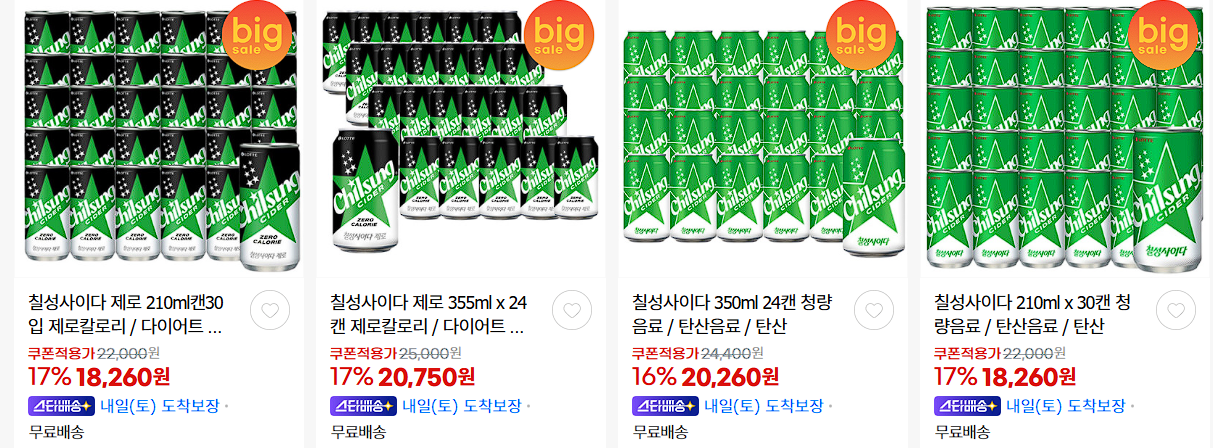 롯데칠성 다양한 제품을 할인 판매하네요.