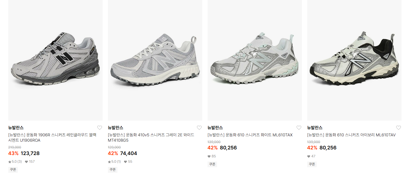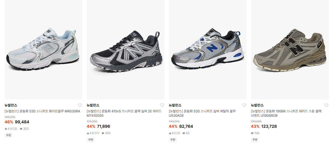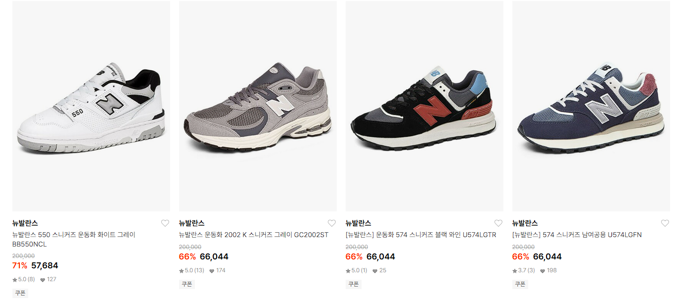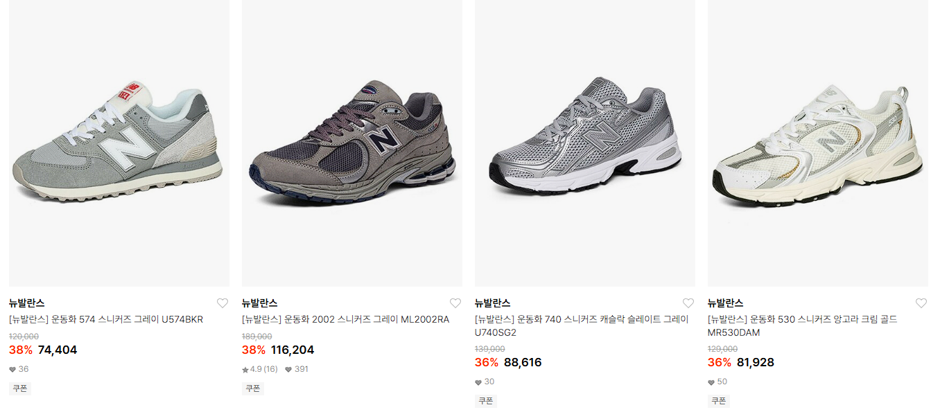 뉴발란스 다양한 제품을 할인 판매하네요.