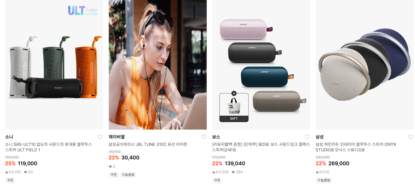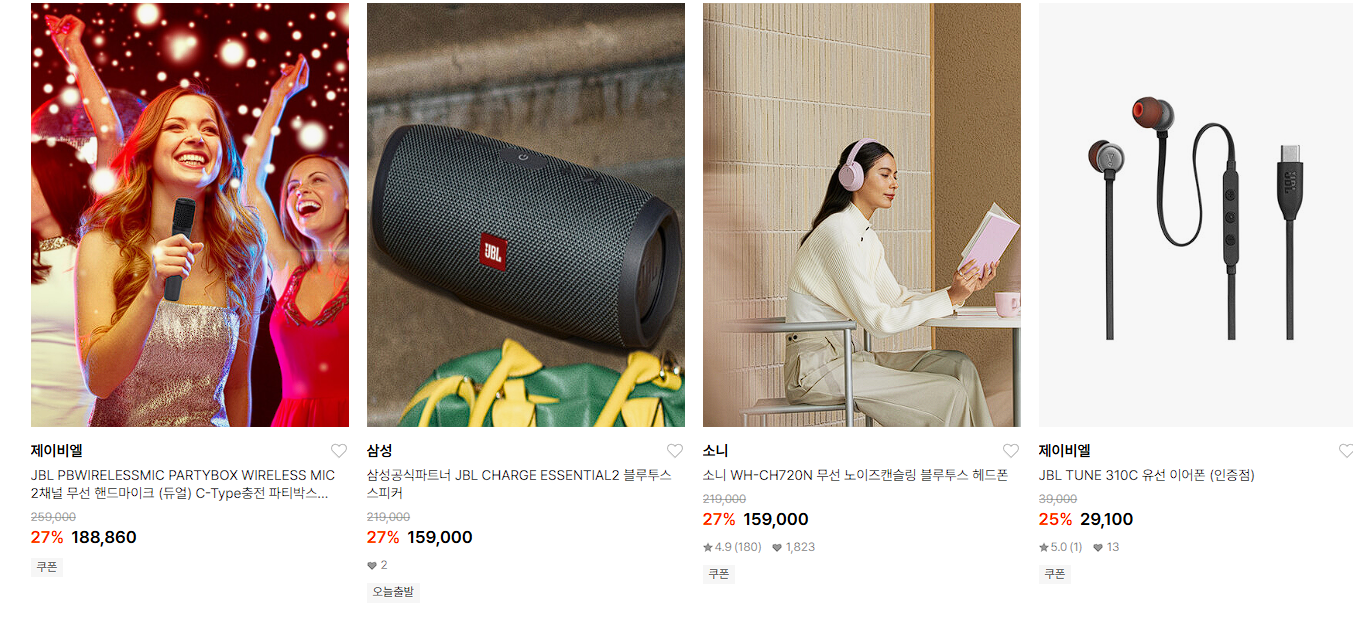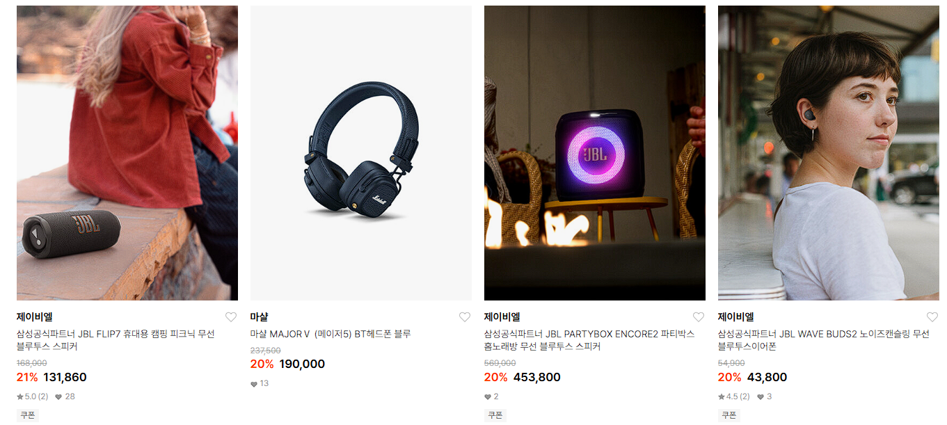 할인 품목 : 헤드폰, 이어폰, 스피커 등