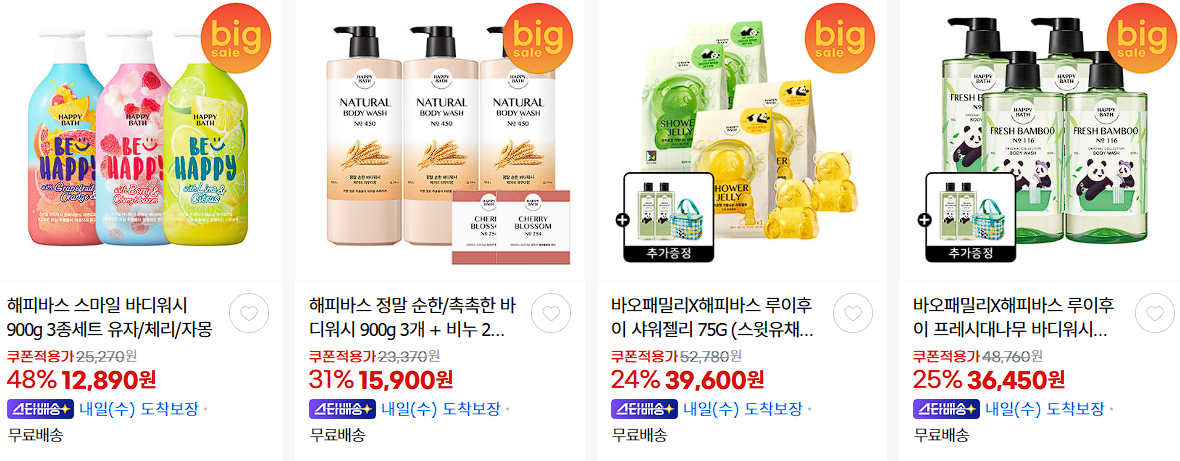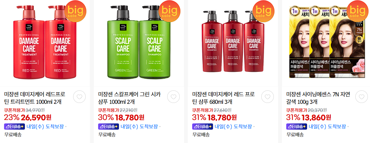 할인 품목 : 샴푸, 비누, 수분크림 등