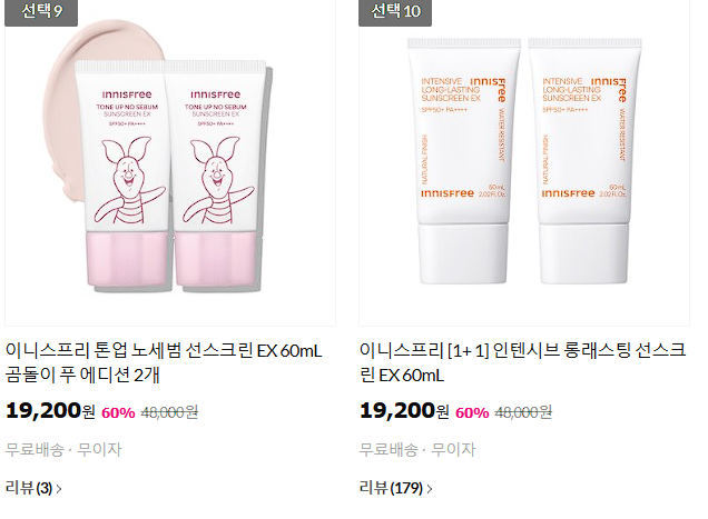 할인 품목 : 클렌징폼, 마스크팩, 수분크림 등