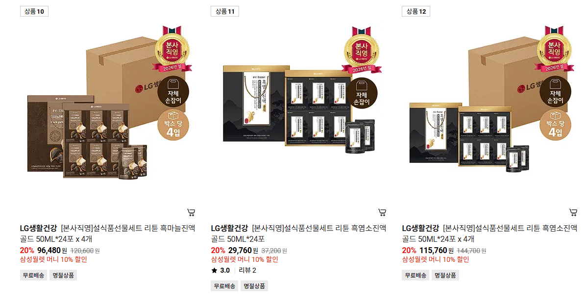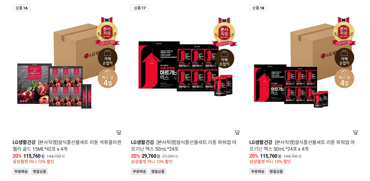 LG생활건강 다양한 선물세트를 할인 판매하네요.