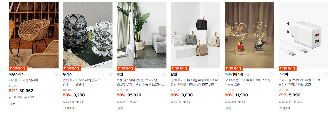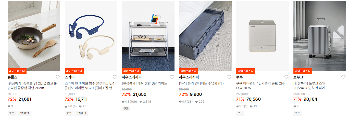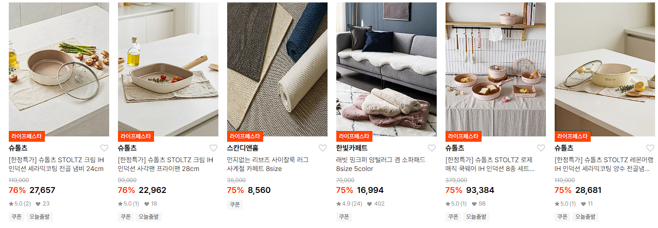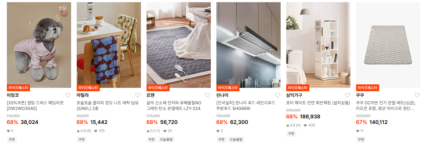 할인 품목 : 가전, 주방용품, 침구류 등