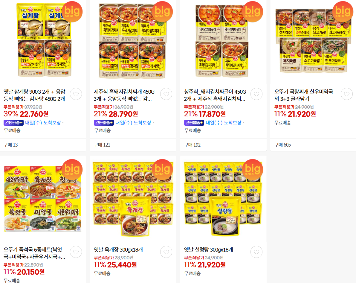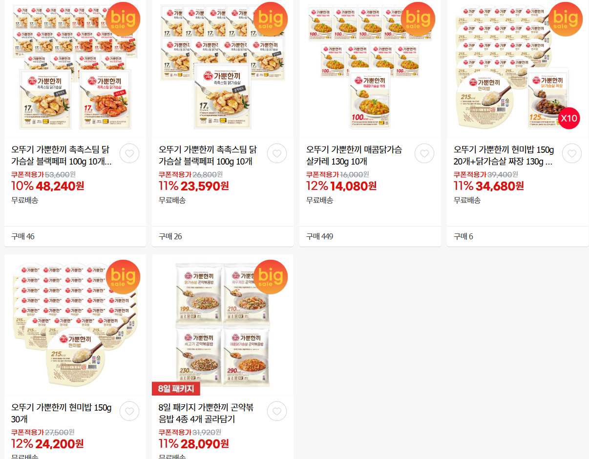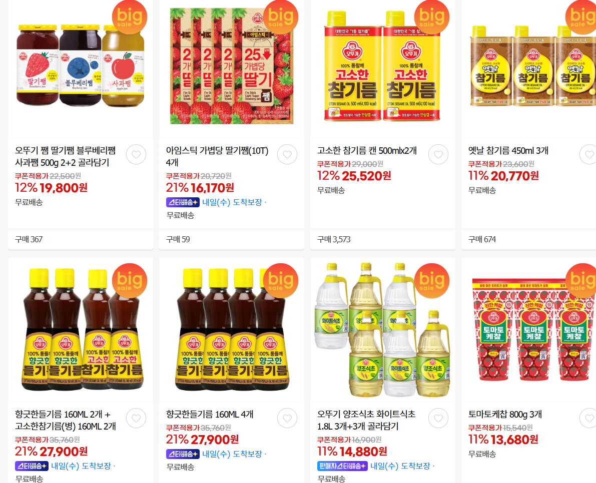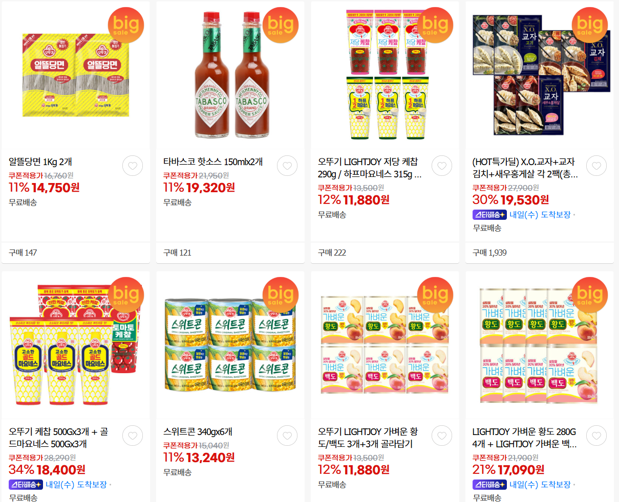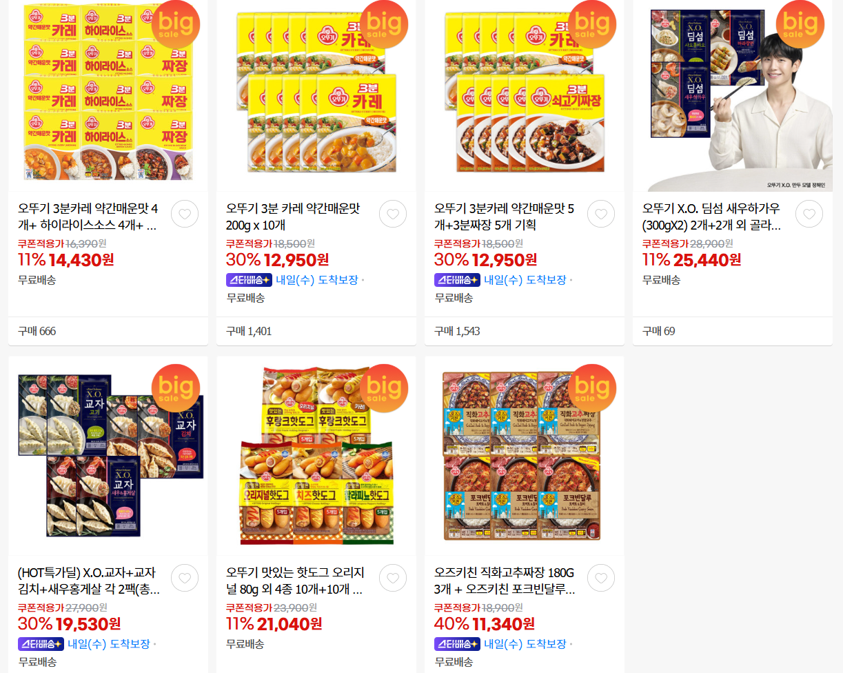 오뚜기 다양한 제품을 할인 판매하네요.