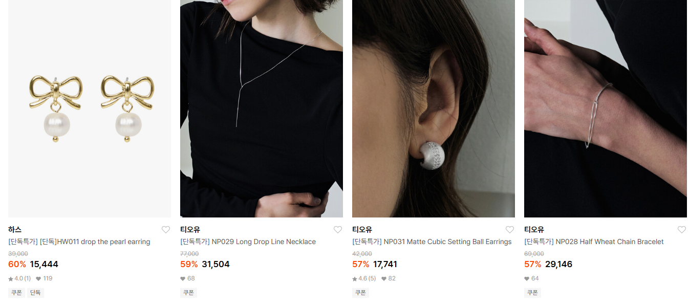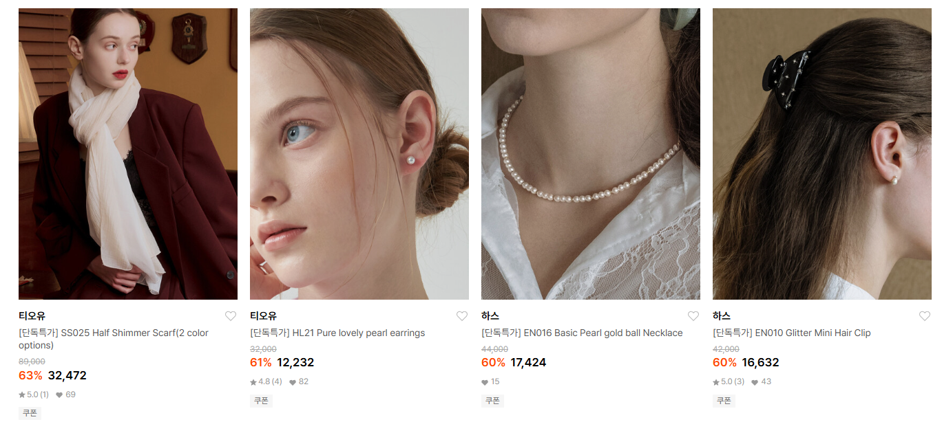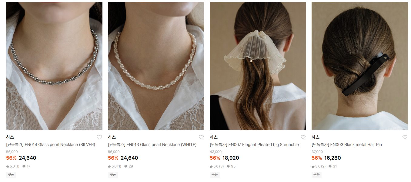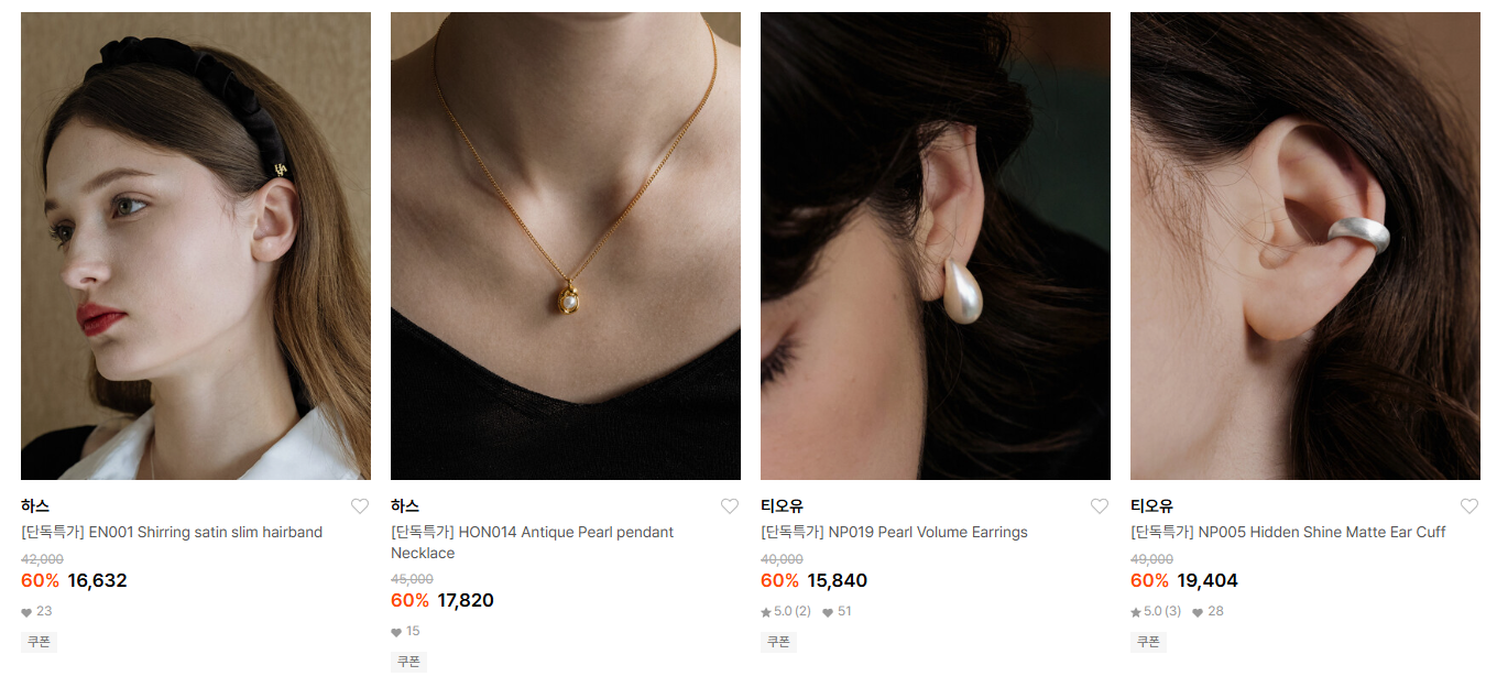할인 품목 : 헤어밴드, 목걸이, 귀걸이 등