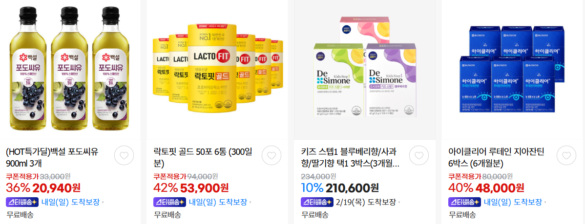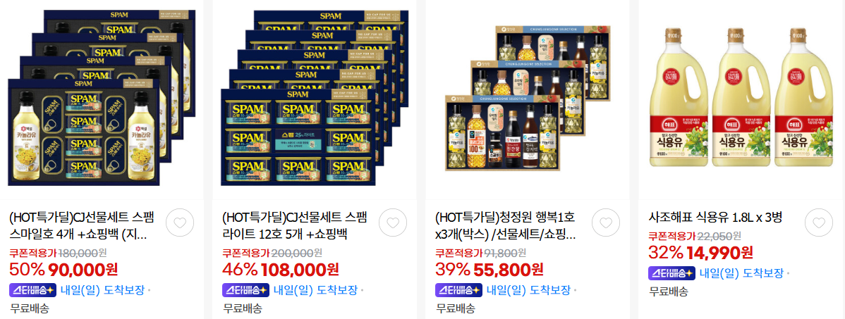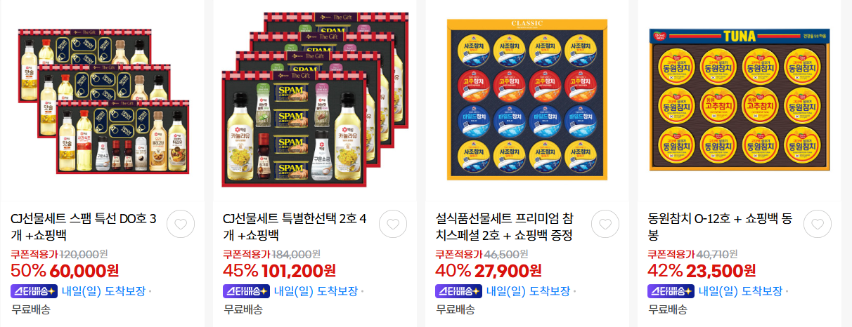 할인 품목 : 영양제, 선물세트, 만두 등