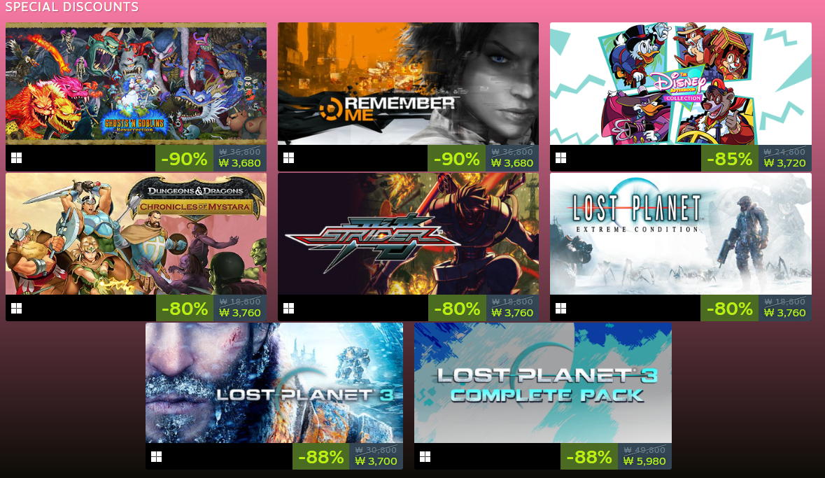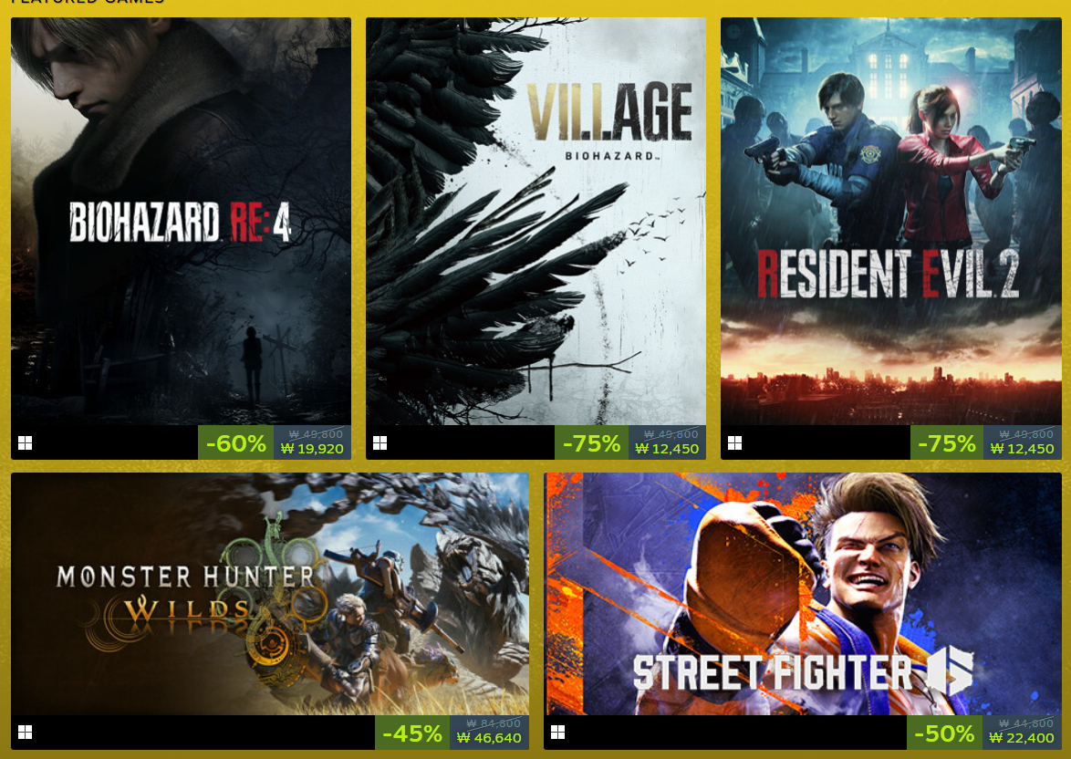 스팀 CAPCOM 배급사 할인 정보 포스팅입니다.