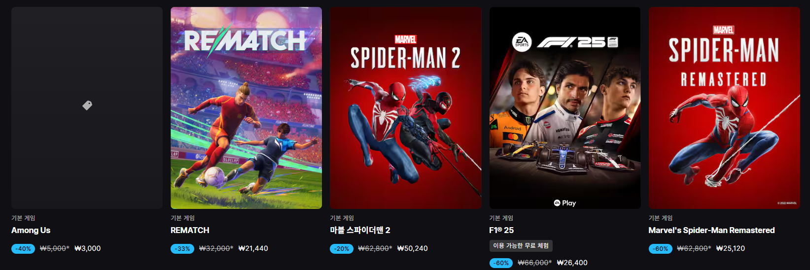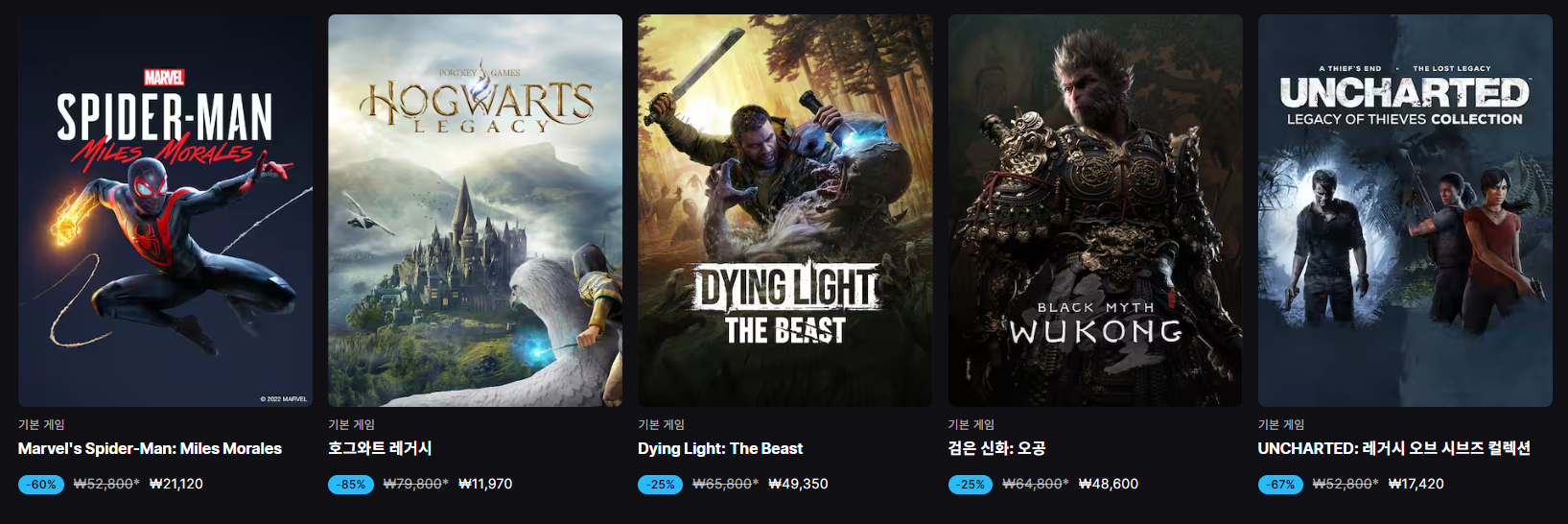 할인 품목 : 풋볼매니저26, FC26, 스파이더맨2 등