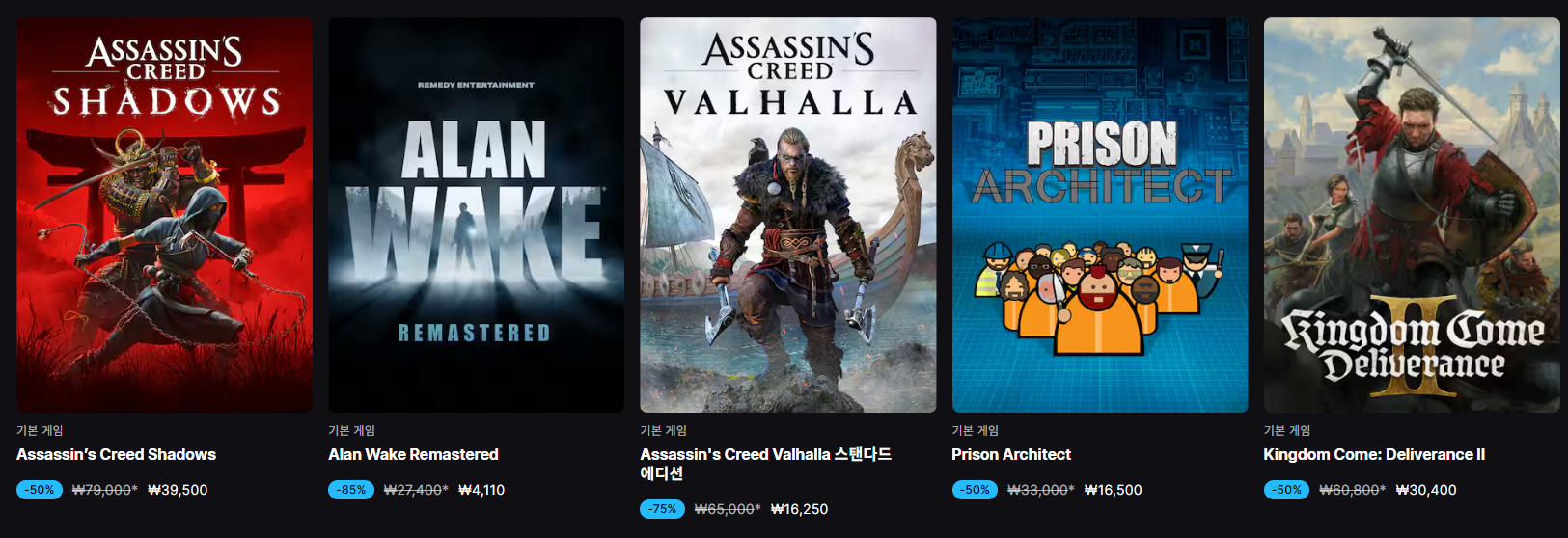 에피게임즈 다양한 게임을 할인 판매하네요.