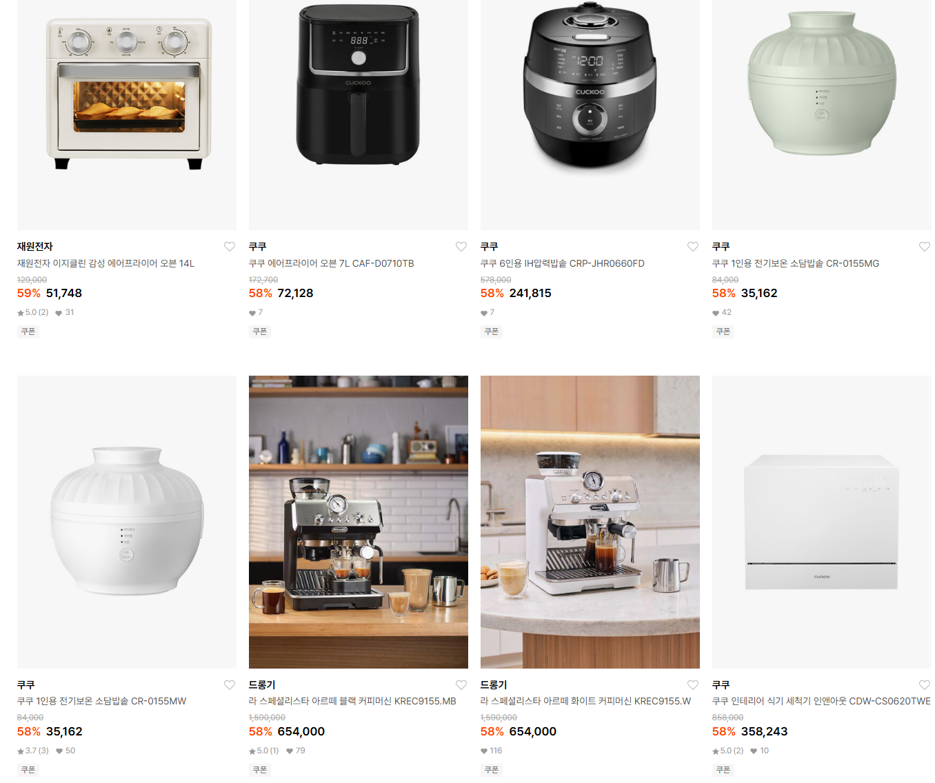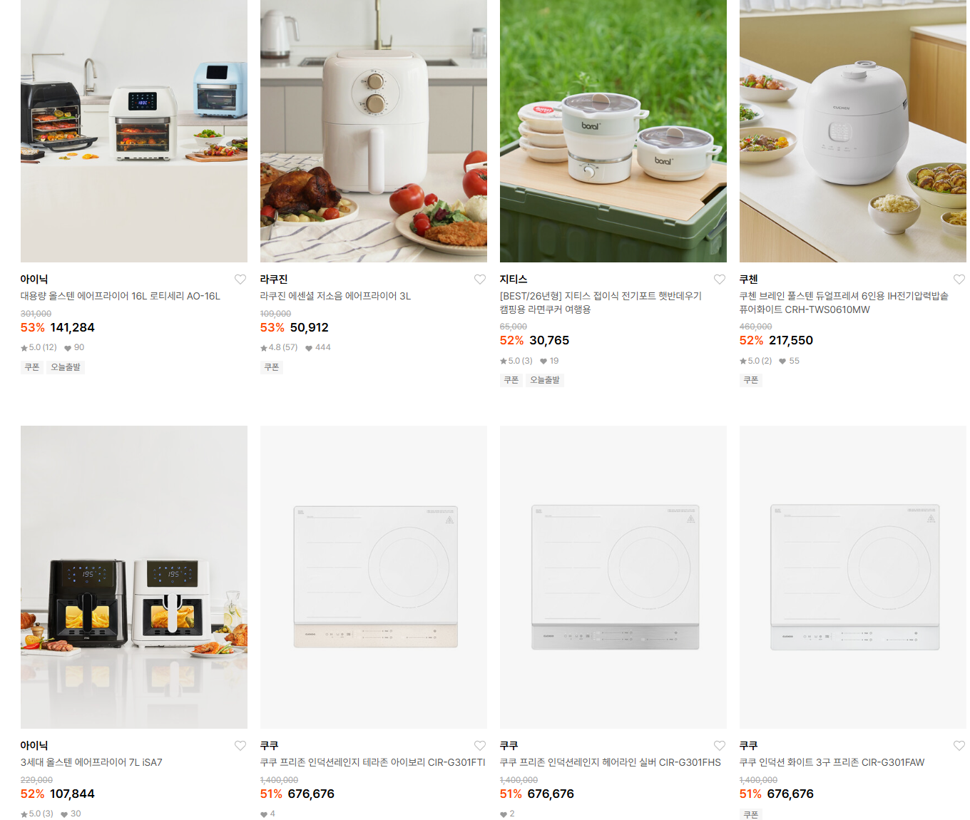 할인 품목 : 에어프라이어, 압력밥솥, 커피머신 등