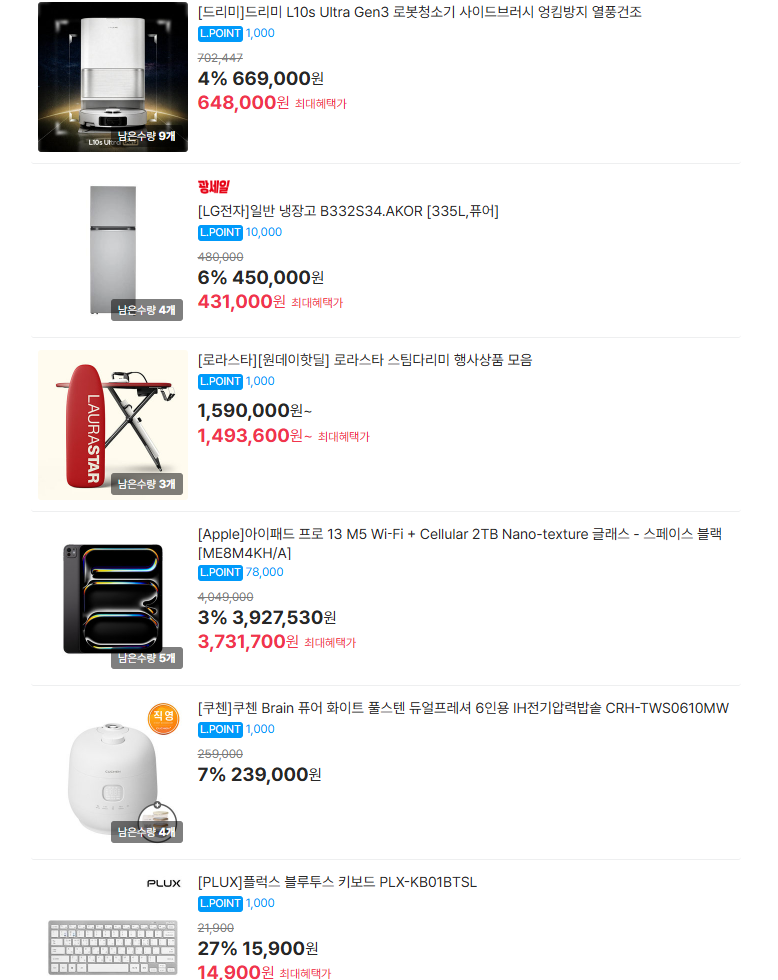 할인 품목 : 보조배터리, 휴대폰, 키보드 등