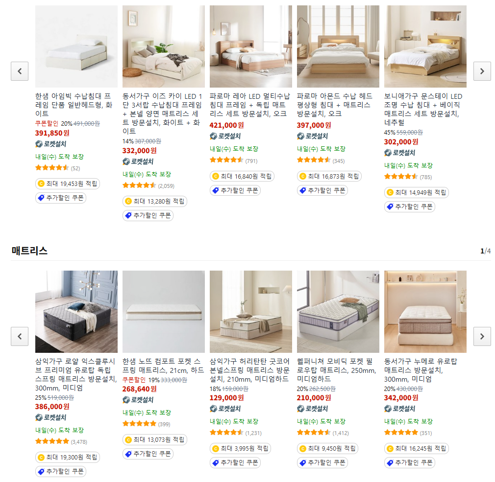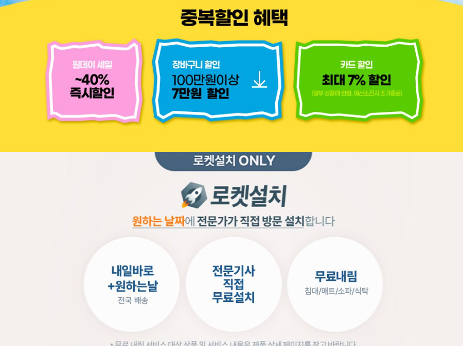 할인 품목 : 침대, 소파, 수납장 등