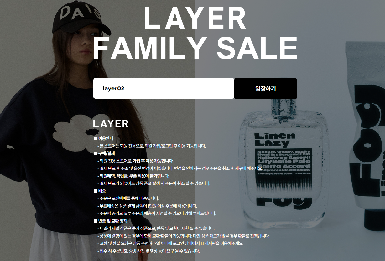 LAYER 패밀리 세일을 진행하네요.