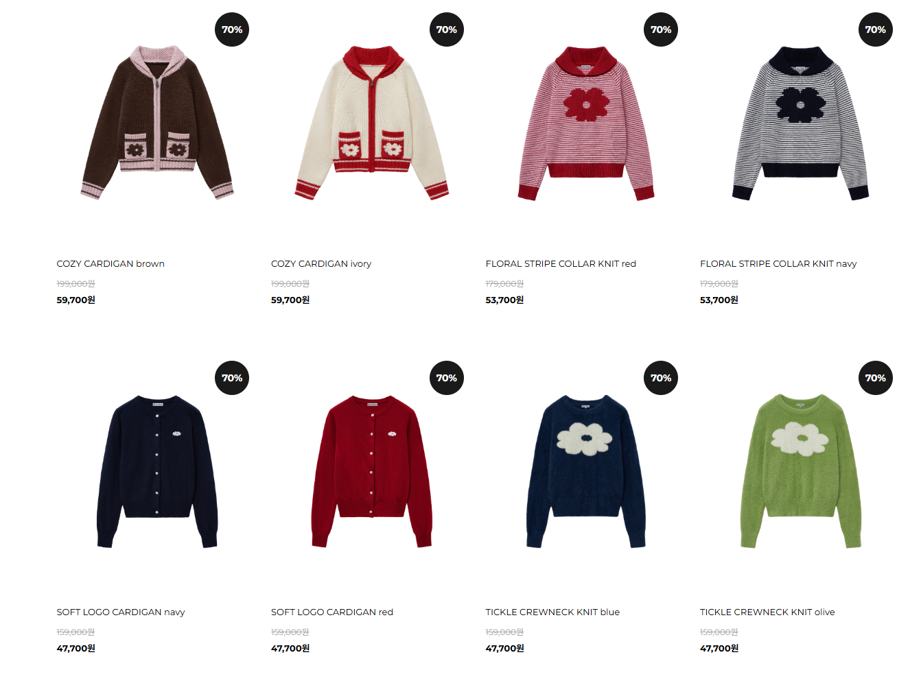 할인 품목 : 의류, 모자, 가방, 향수 등