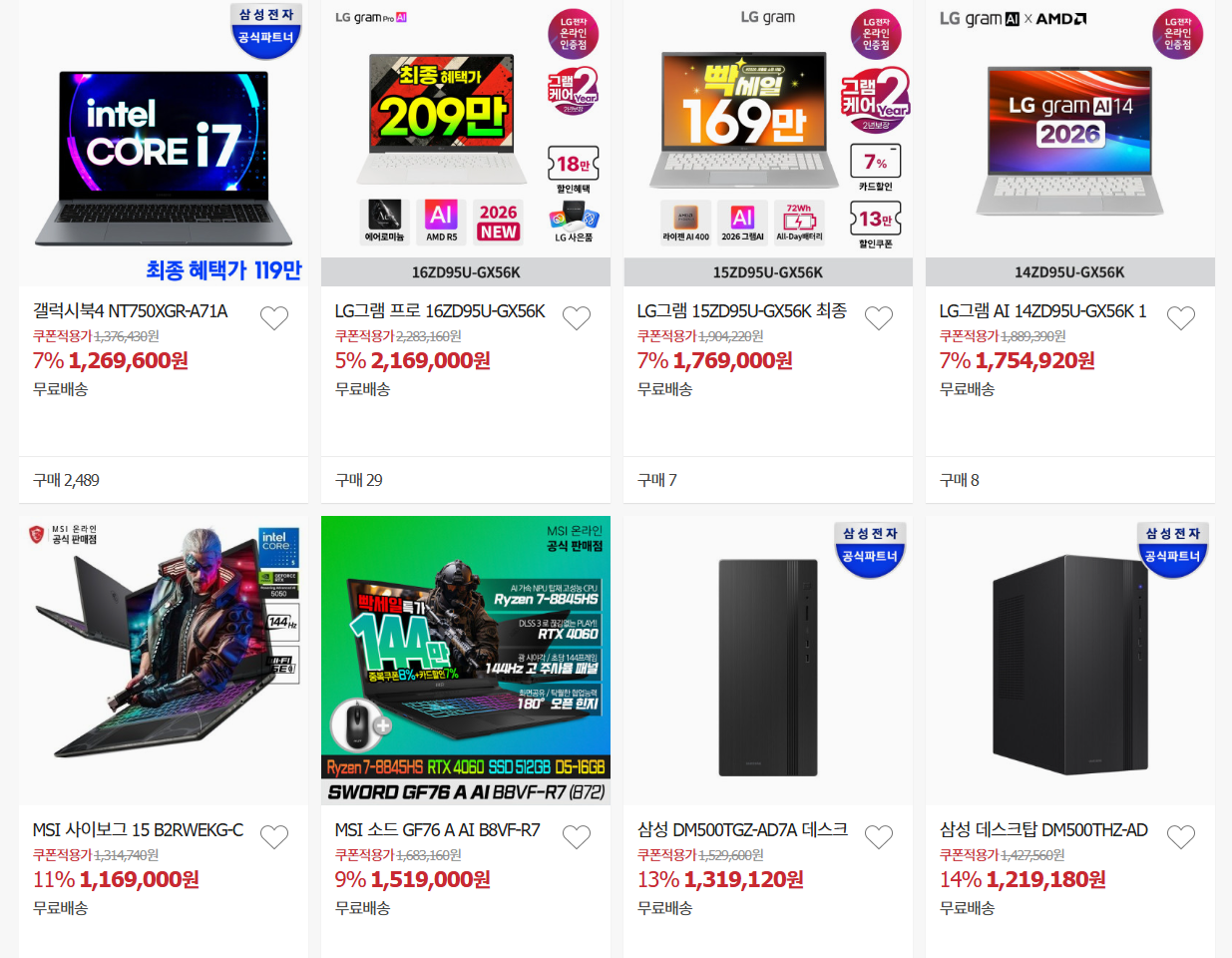 할인 품목 : 노트북, 모니터 등