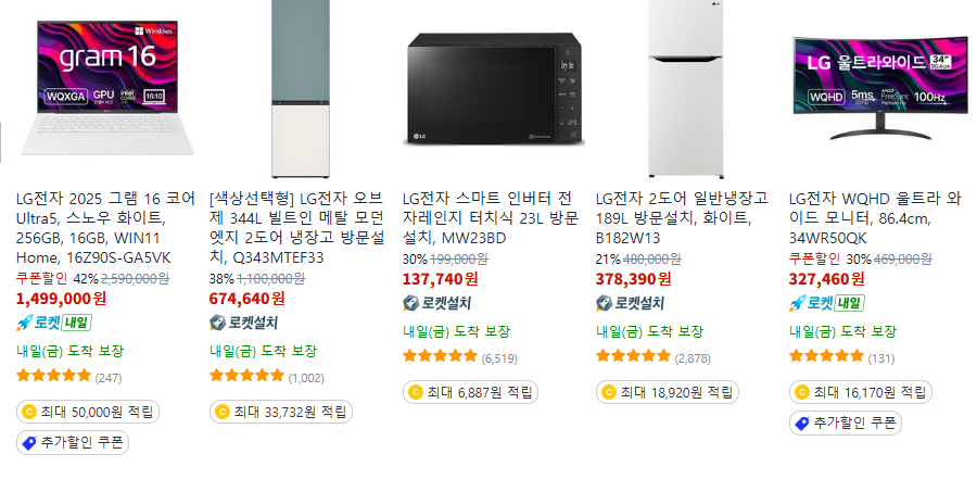 할인 품목 : 노트북, 보조배터리, 전자레인지 등