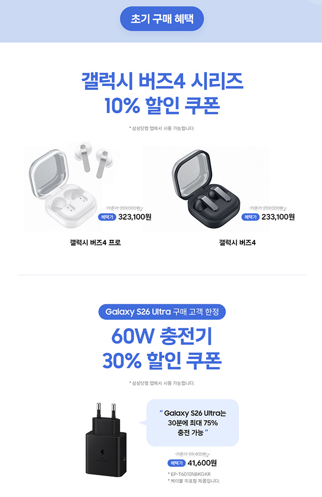 삼성 갤럭시 S26 시리즈 사전 구매 이벤트 진행하네요.