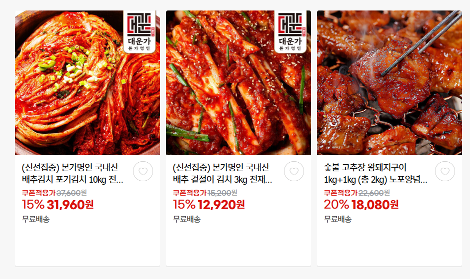 할인 품목 : 부대찌개, 김치, 물티슈 등